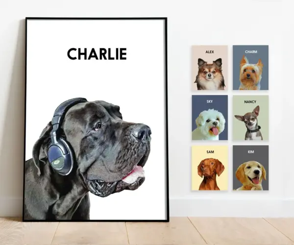 Pet Portrait Custom And Personalized Pet Dog Cat Wall Art To Print On Poster Or Canvas For Pet Lover Gift