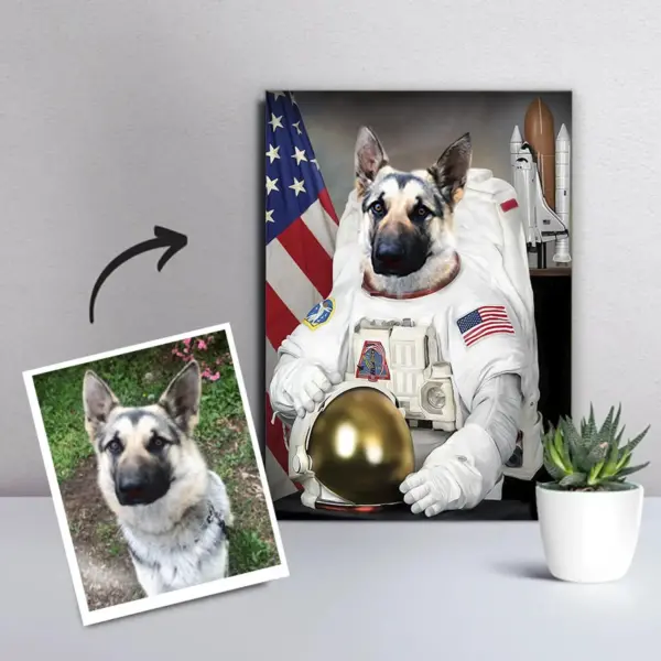 Pet Portrait Custom And Personalized Pet Dog Wall Art Poster Wall Decor Canvas For Gift Royal Cat Renaissance The Astronaut