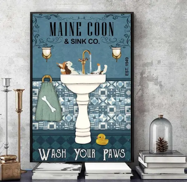 Pet Poster Sink Maine Coon Poster Wash Your Paws Poster Wall Art Decor Maine Coon Cat Poster Cat Poster Cat Lover Wall Art Decor