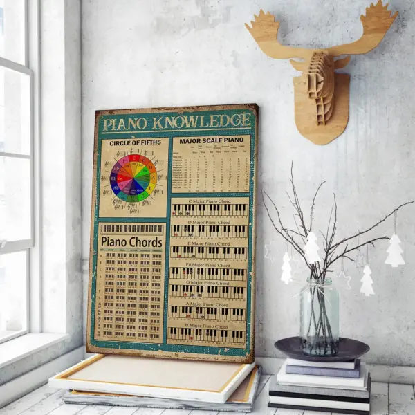 Piano Chords Chart Poster Canvas Music Studio Wall Decor Piano Lover Gift Piano Knowledge Circle Of Fifths Major Scale Piano
