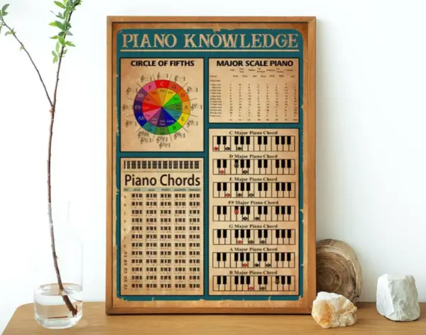 Piano Knowledge Poster Piano Chords Chart Art Print Major Scale Piano Music Studio Wall Decor Music Vertical Poster No Framed