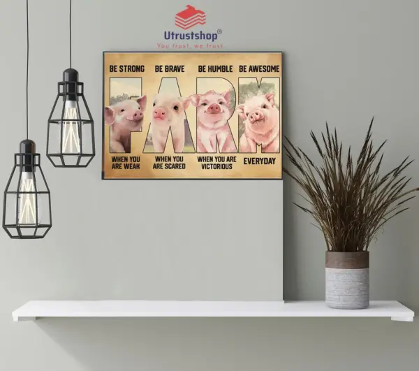 Pig Farm Be Strong Be Brave Be Humble Be Awesome Poster