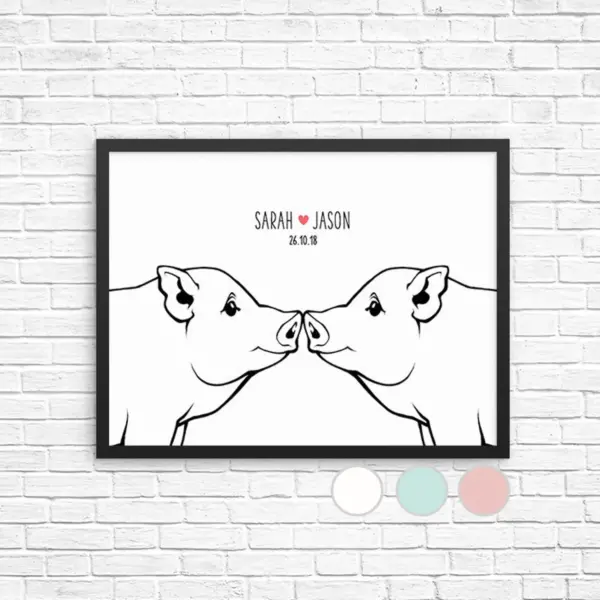Pig Wall Art Custom Name Print Personalized Couple Wedding Decor Farm Animal Sign Poster Newlywed Valentine Housewarming Gift