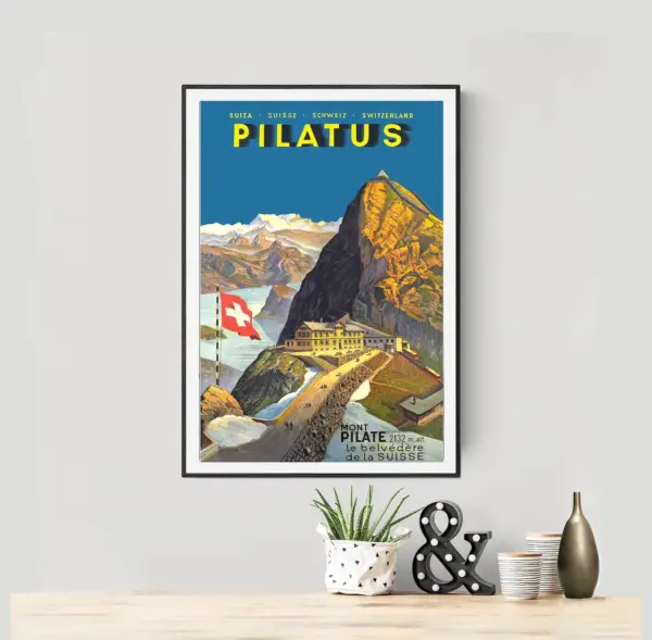 Pilatus Mont Pilate Switzerland Vintage Travel Poster Poster Paper Sticker Or Canvas Print Gift Idea Wall Art