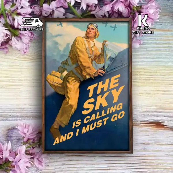 Pilot Flyer Skydiving The Sky Is Calling And I Must Go Poster Wall Art Print Home Living Decor Poster