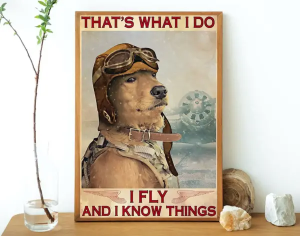 Pilot Golden Retriever Dog That S What I Do I Fly I Know Things Poster Dog Lovers Poster Gift For Pilots Vertical Poster No Framed