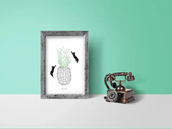 Pineapple Cat Print Poster Cat Poster Handmade Cat Decor Cat Illustration Cute Animal Art Cat Graphic Print Cute Cats Fruit