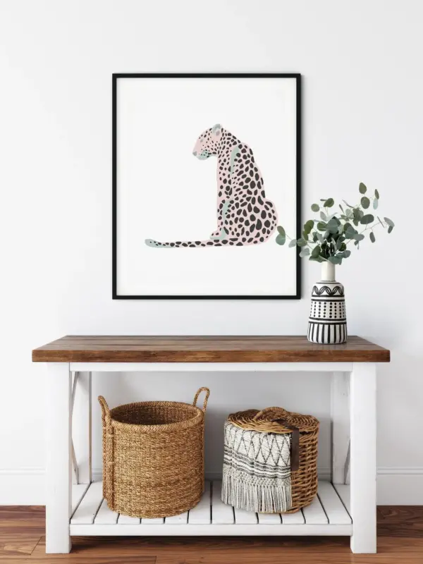 Pink Leopard Print Leopard Wall Art Big Cat Art Animal Poster Pastel Nursery Print Grey Pink Wall Art Girls Room Prints Safari Wall Decor