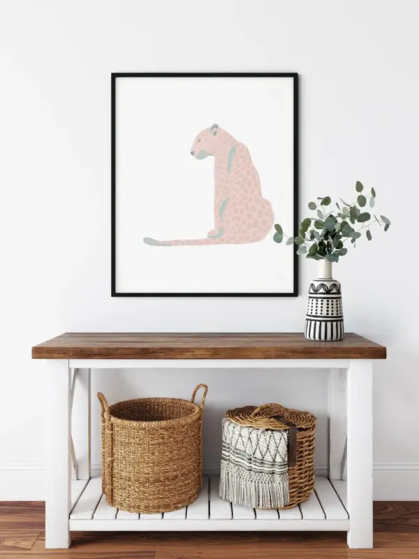 Pink Leopard Wall Art Big Cat Art Animal Poster Pastel Nursery Print Grey And Pink Wall Art Girls Room Prints Safari Wall Decor