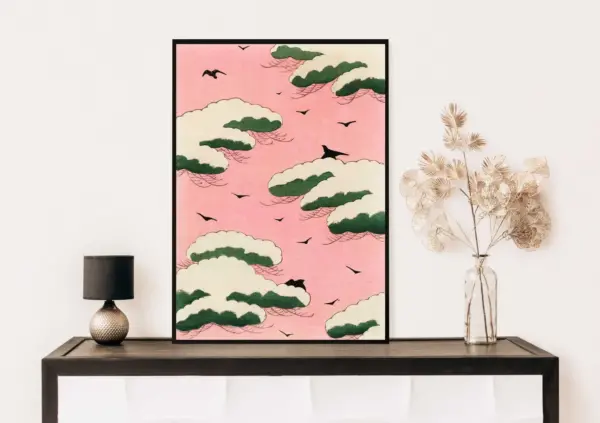 Pink Sky By Watanabe Seitei Japanese Art Print Vintage Print Trendy Japanese Print Seitei Print Wall Art Poster Print S