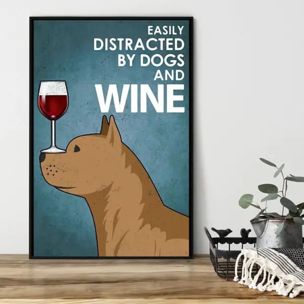 Pitbull Easily Distracted By Dogs And Wine Wrapped Canvas