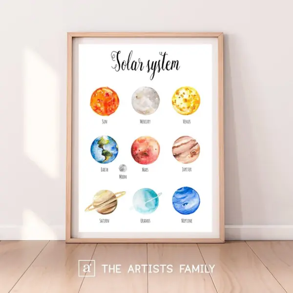Planets Solar System Downloadable Prints Water Color Montessori Educational Posters For Kids Boys Girls Children Rooms Learning Painting