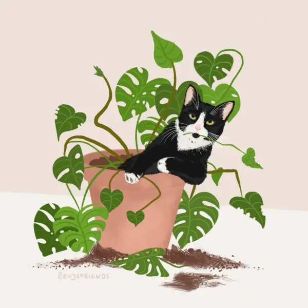Plant Eater Tuxedo Cat Print Cat Wall Art Cat Art Print Plant Cat Funny Cat Print