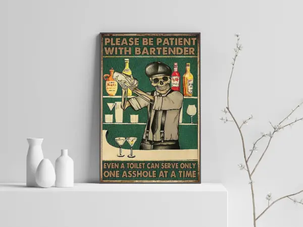 Please Be Patient With Bartender Poster Skeleton Poster Drinking Bar Art Bartender Gift Bar Decor Art Signs For Home
