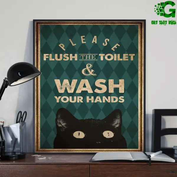 Please Flush The Toilet And Wash Your Hand Poster Cat Lovers Wall Art Home Decor Wall Decor Best Gift Ever
