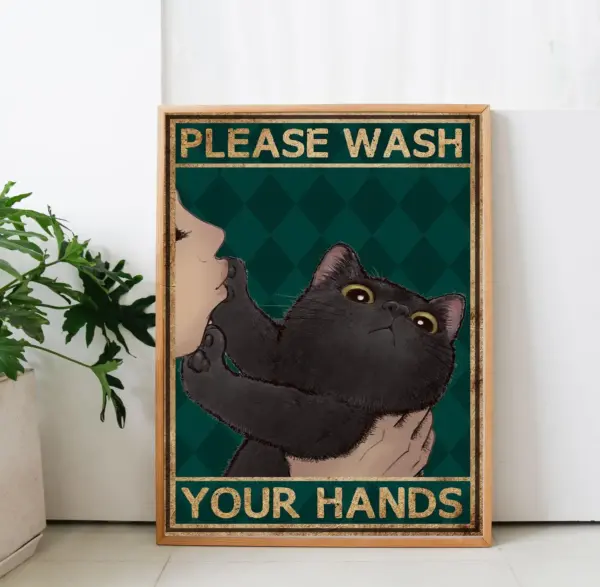 Please Wash Your Hands Poster Best Gift For Black Cat Lovers Black Cat Wall Art Black Cat Bathroom Poster Best Decor For Your Home