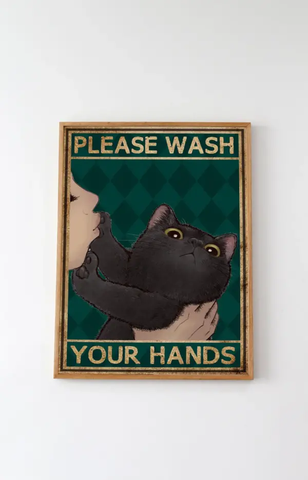 Please Wash Your Hands Poster Best Gift For Black Cat Lovers Black Cat Wall Art Black Cat Bathroom Poster New Idea For Your Home Decor