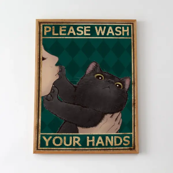 Please Wash Your Hands Poster Best Gift For Black Cat Lovers Funny Black Cat Toilet Art Black Cat Bathroom Poster