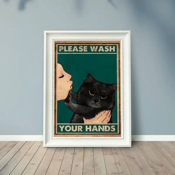 Please Wash Your Hands Poster Funny Cat Poster Bath Room Decor Nursery Decor Cat Lover Home Decor Bathroom Wall Art Black Cat Decor
