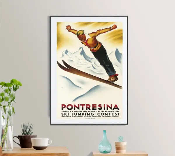 Pontresina Switzerland Ski Jumping Contest 1928 Travel Poster Poster Print Sticker Or Canvas Print Gift Idea Wall Decor