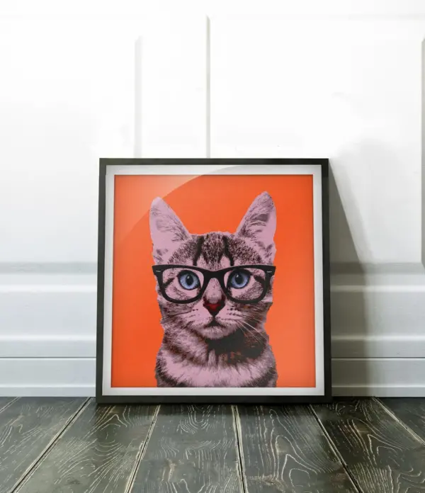 Pop Art Geek Cat In Orange Background Print Home Decor Wall Art Poster Gift Birthday Cat Lover Gift Animal Print
