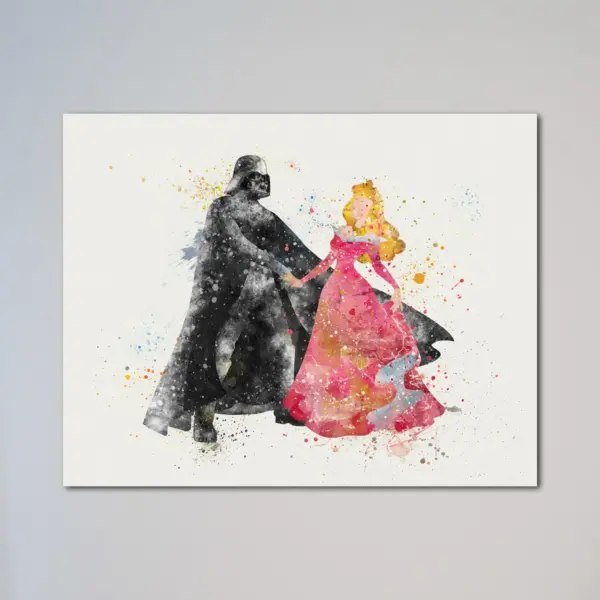 Unique watercolor art print featuring Princess Aurora and Darth Vader. A perfect gift for Star Wars and Sleeping Beauty fans! Beautiful artwork, high-quality print.