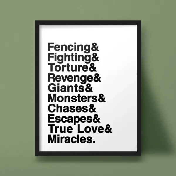 Princess Bride Typographic Poster Fencing Fighting Torture Revenge