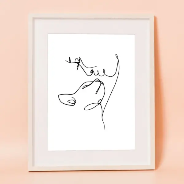Printable A Black And White Single Line A Girl With Her Cat Kissing Minimal Lines Poster Art Modern Poster One Line Art