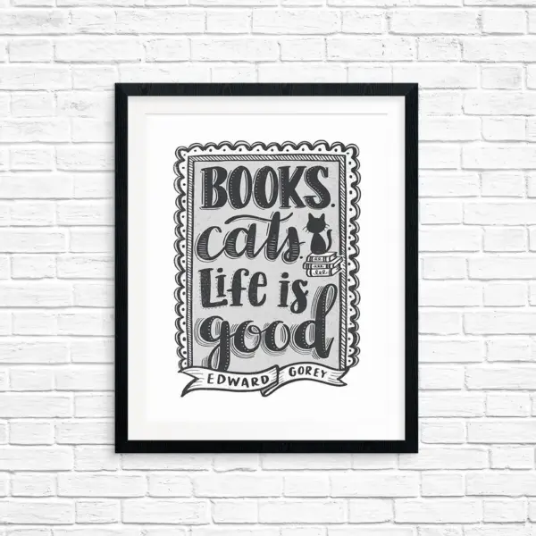 Printable Art Books Cats Life Is Good Edward Gorey Book Lover Quote Art Printable Diy Home Decor Hand Lettered Print