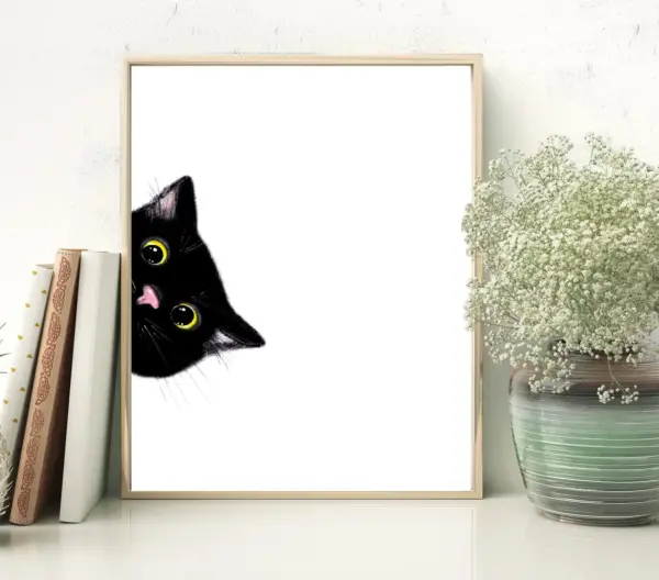 Printable Black Cat Print Black Cat Poster Cat Lover Gift Black Cat Painting Black Cat Wall Art Cat Living Room Decor Black Cat Prints
