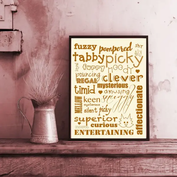 Printable Cat Subway Art Adorable Cat And Kitten Descriptions 8 Trim Black Or Brown Text Color Posters