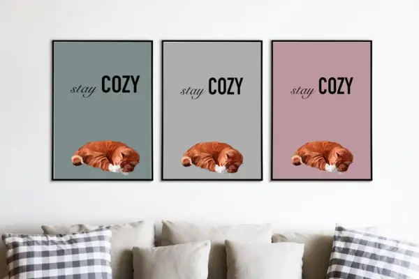 Printable Cat Wall Art Set Of 3 Items Cheese Tabby Modern Wall Art Orange Cat Livingroom Interior Stay Cozy Polygon Art Nursery Room