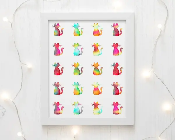 Printable Cat Wall Art Watercolor Cat Pattern Cat Nursery Decor Cat Painting Cat Print Cat Lover Gift Cat Poster
