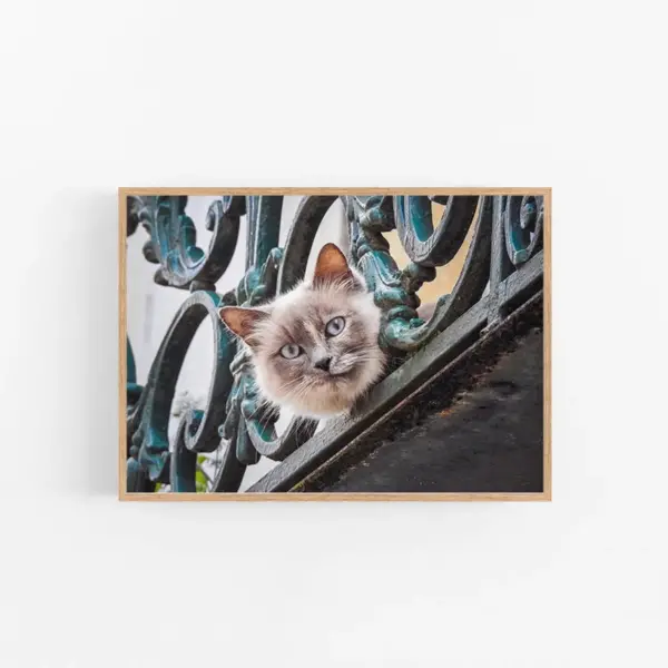 Siamese Cat Paris Balcony Wall Art Print - Elegant Parisian Pet Portrait Decor