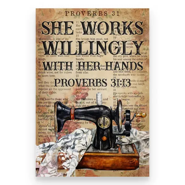 Proverbs 31 She Works Willingly With Her Hands Vertical Print Poster