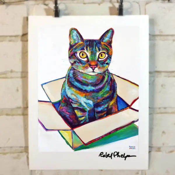 Psychedelic Cat Art By Robert Phelps By 11 Unframed Print Fun And Colorful Kitty Painting For Children S Bedroom Or Cat Lover Gift