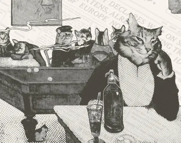 Pub Decor Funny Cat Print Funny Art Print Cat Portrait Cat Lover Gift Newspaper Print Newspaper Art Black And White Print Wall Print