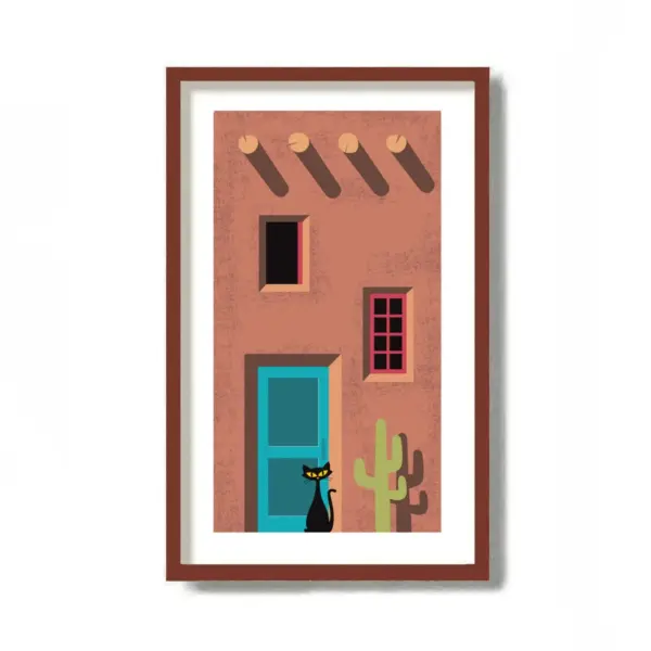 Pueblo Art Black Cat Lover Gift Native American Art Mid Century Modern Art American Indian Southwest Art Print Rustic Western Decor