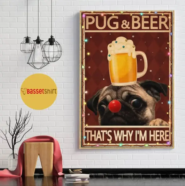 Pug And Beer Thats Why Im Here Christmas Poster