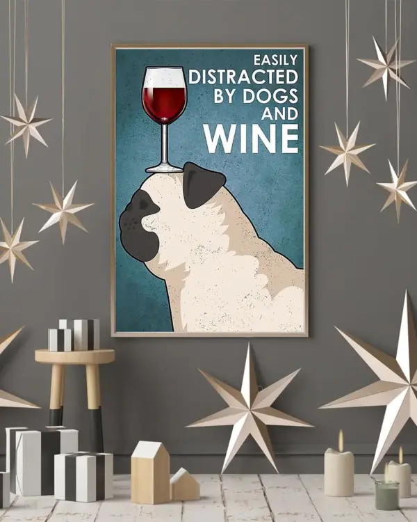 Pug Dog Easily Distracted By Dogs And Wine Poster