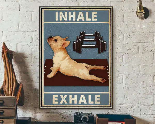 Pug Dog Inhale Exhale Vertical Poster Funny Dog Pose Poster Cute Dog Doing Exercise Wall Print Animal Art Dog Lover Gift No Frame