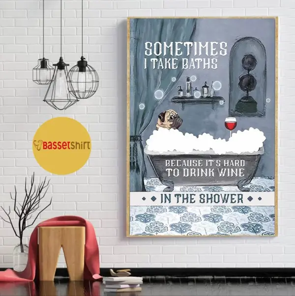 Pug Dog Sometimes I Take Baths Because It Harder To Drink Wine Poster