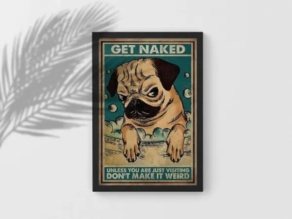 Pug Get Naked Unless You Re Just Visiting Poster Funny Pug Print Dog Lover Gift Bathroom Art Funny Bathroom Poster Signs For Home