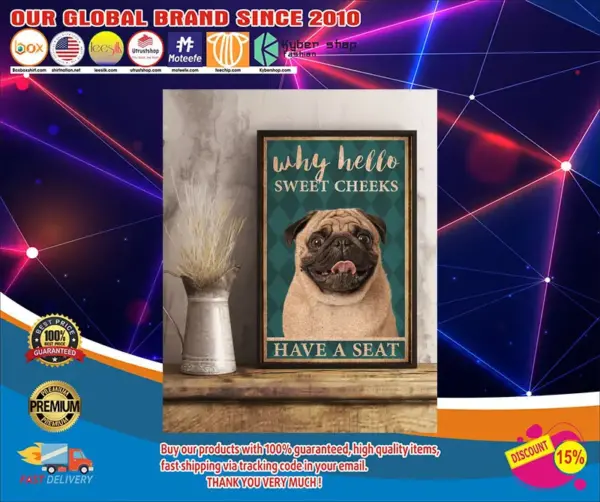 Pug Why Hello Sweet Cheeks Have A Seat Poster