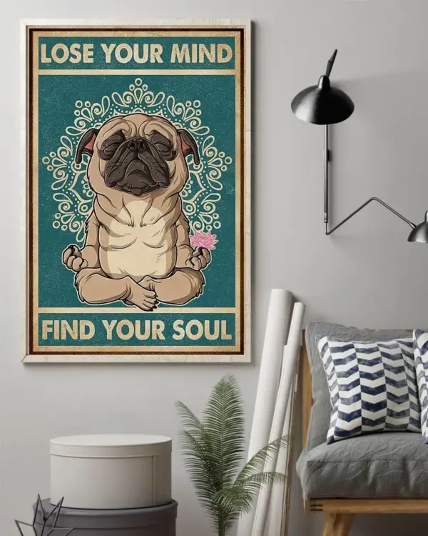 Pug Yoga Retro Find Your Soul Pug Yoga Vertical Poster Yoga Lover Poster Funny Dog Yoga Poster Vintage Hippie Yoga Poster Framed Matte Canvas