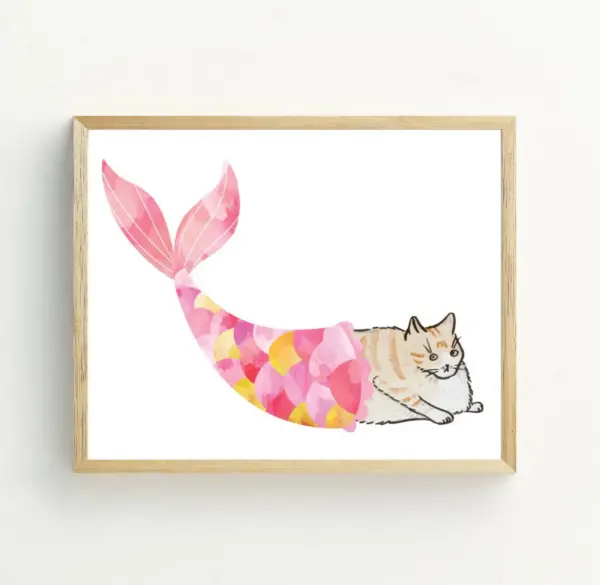 Purrmaid Print Cat Mermaid Wall Art Mewmaid Printable Art Nursery Wall Art Girls Room Decor 5 8