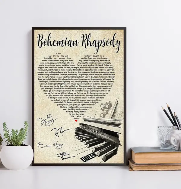Queen Bohemian Rhapsody Lyrics Poster Song Lyrics Poster Song Lyrics Print Lyrics Wall Art Music Poster Vertical No Framed 0609