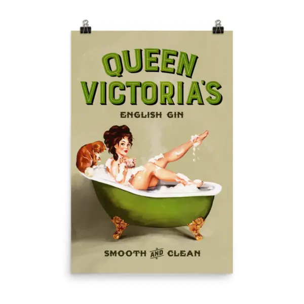 Queen Victoria S English Gin Vintage Pinup Girl In The Bath Alcohol Ad Poster Cool Wall Art For Alcohol Retro Art Lovers