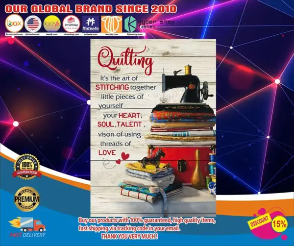 Quilting Its The Art Of Stitching Together Little Pieces Yourself Your Heart Soul Talent Poster