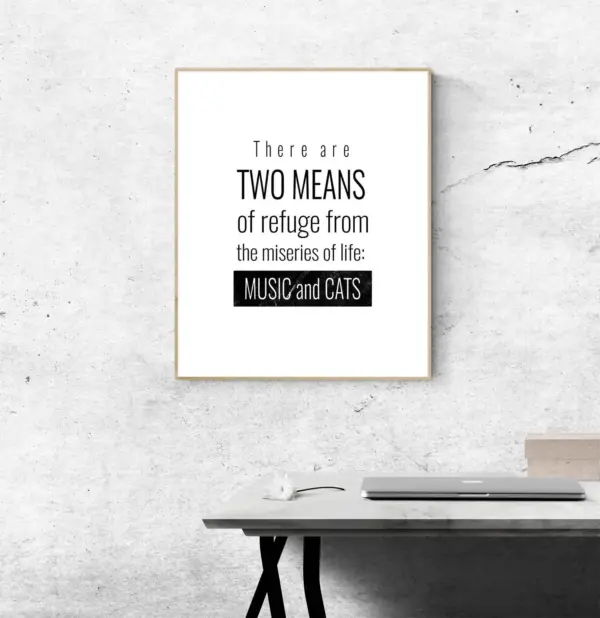 Quote About Music Quote About Cats Gift For Musician Music Wall Art Gift For Cat Lover Music Art Print Musician Print Cat Love Print